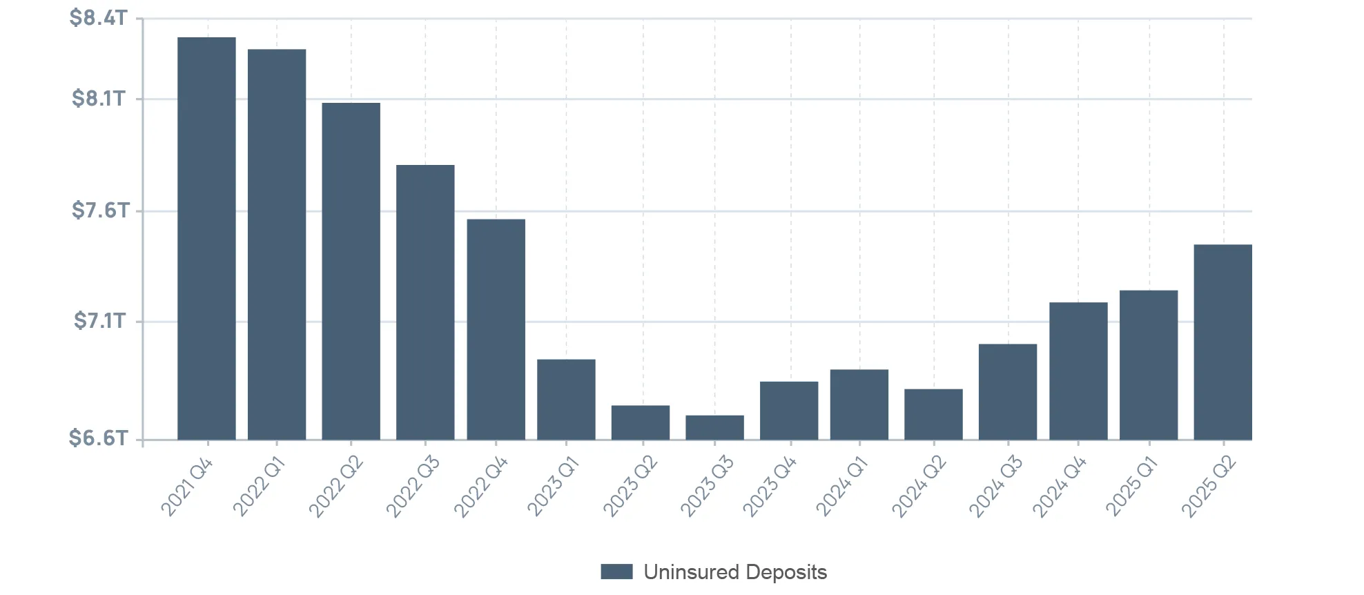 The FDIC’s Q2 2025 Quarterly Banking Profile reported a $218.5 billion (3.0%) increase in uninsured deposits. Examiners expect not just awareness but clear action. Through reciprocal deposit programs, trust companies and other institutions can provide their customers with access to expanded deposit insurance coverage through a network of FDIC-insured receiving banks. This structure diversifies exposure for customers and demonstrates a proactive approach to reducing uninsured balances, which has drawn regulatory scrutiny in recent years.